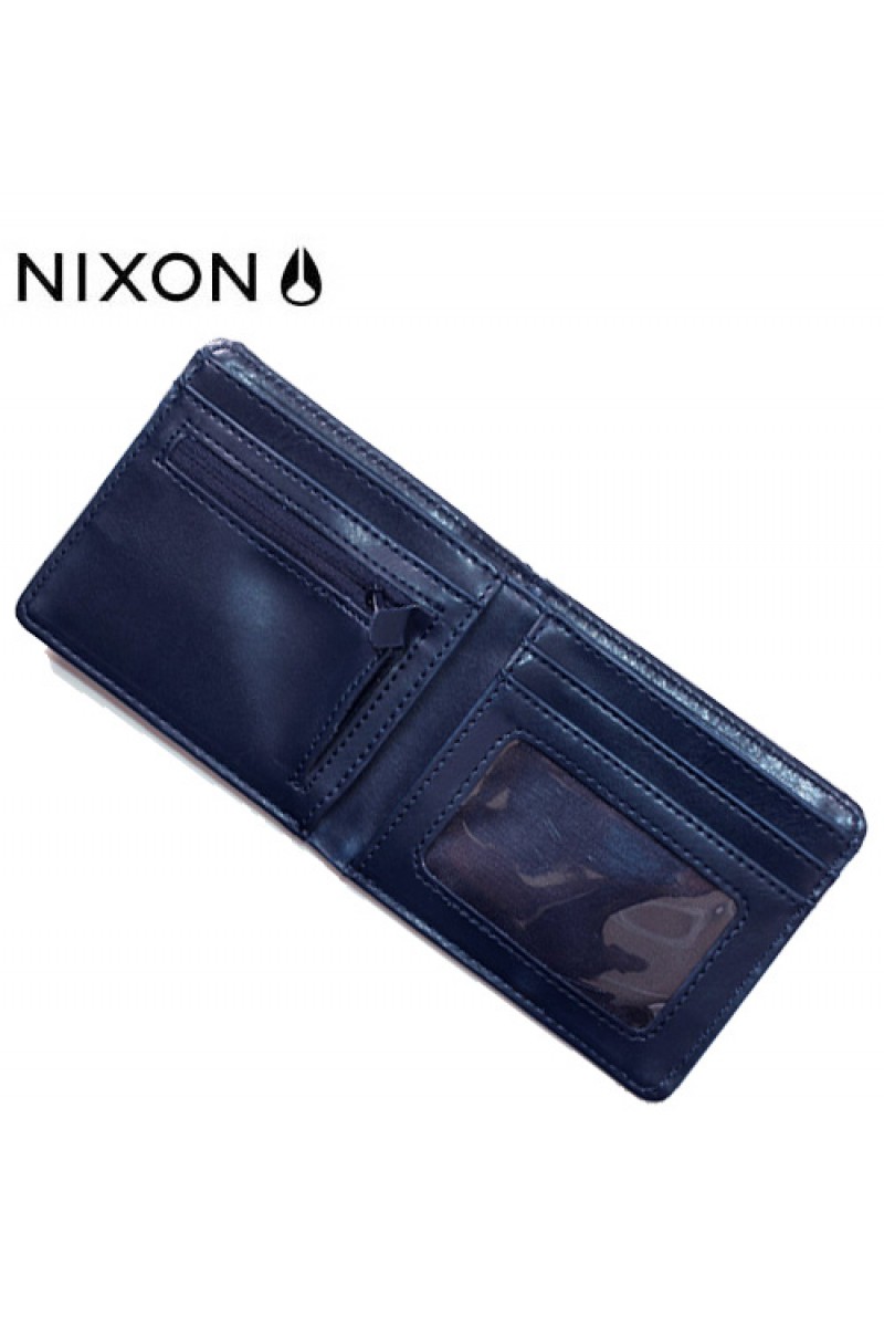 Itin kompaktiška tamsiai mėlynos spalvos  piniginė su firminiu "Nixon" ženklu. 3 skyreliai kortelėms, 2  atskiri skyreliai dokumentams, 1 vidinis skyrius popierinėms kupiūroms,  1 permatomas skyrelis nuotraukai ar dokumentui, 1 užsegamas skyrelis monetoms.