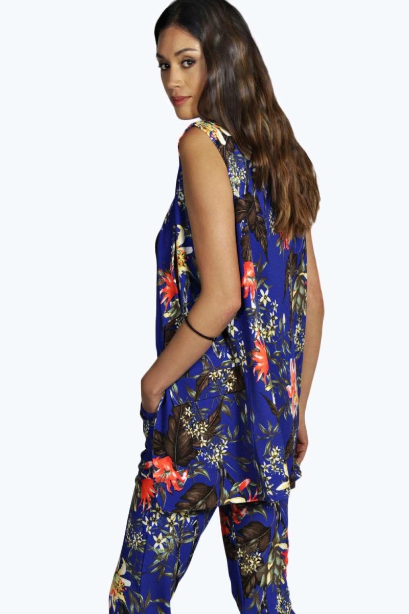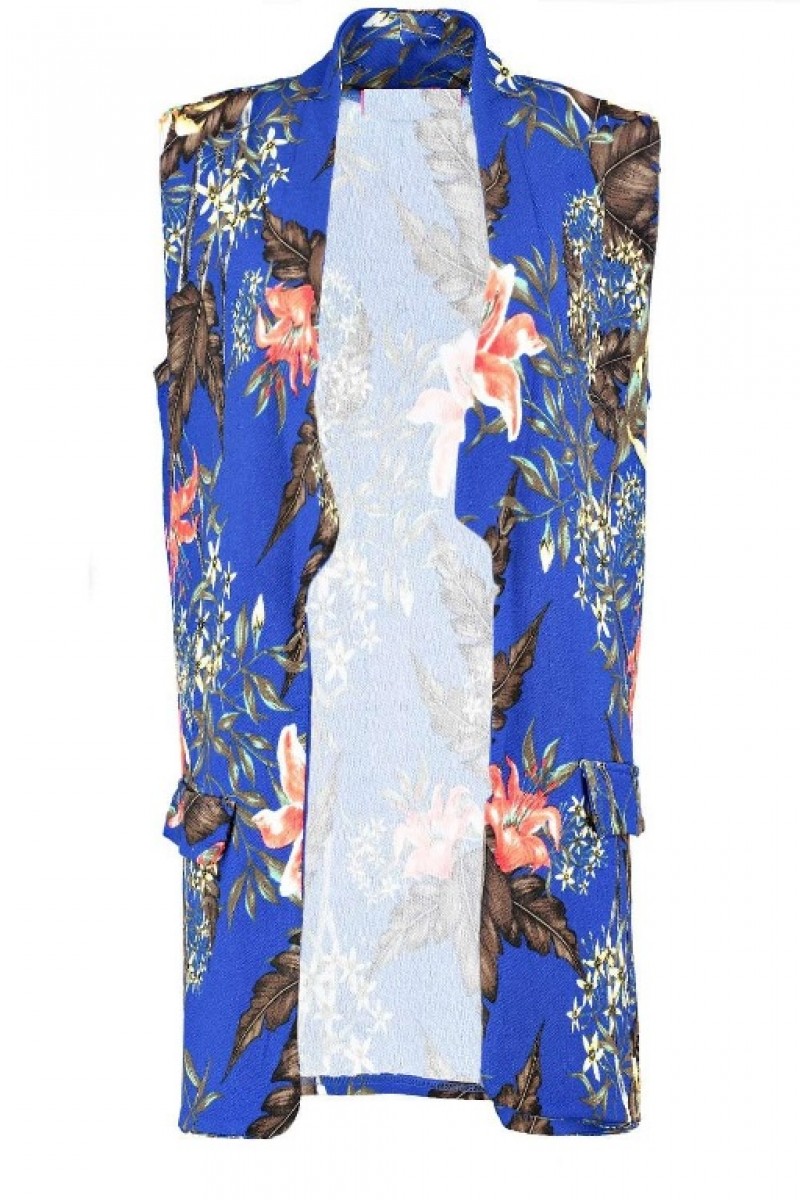 - Tropiniais dizainas raštuota mėlynos spalvos Duster liemenė - dabar itin madinga!