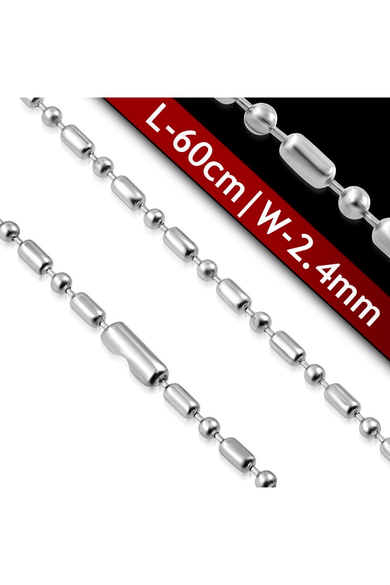 Nerūdijančio plieno Military(karinė) grandinėlė su 2.4mm burbuliukais, 60cm.