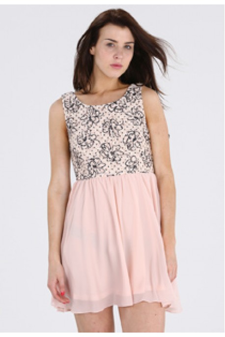 Lengva ir daili šifoninės medžiagos Kimberly suknelė, dekoruota gėlėtais nėriniais ant krūtinės. Nugaroje užsegama užtrauktuku.